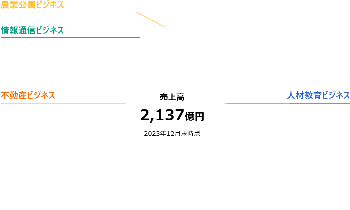現在は、人材教育、不動産、情報通信、農業公園の4つのビジネスでバランスの取れた成長を図っています。